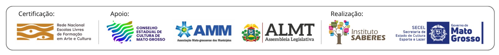 O projeto recebe o apoio institucional da Assembleia Legislativa de Mato Grosso, da AMM – Associação Mato-grossense dos Municípios, do Conselho Estadual de Cultura e da CIB - Comissão Intergestora Bipartite da Cultura em Mato Grosso.